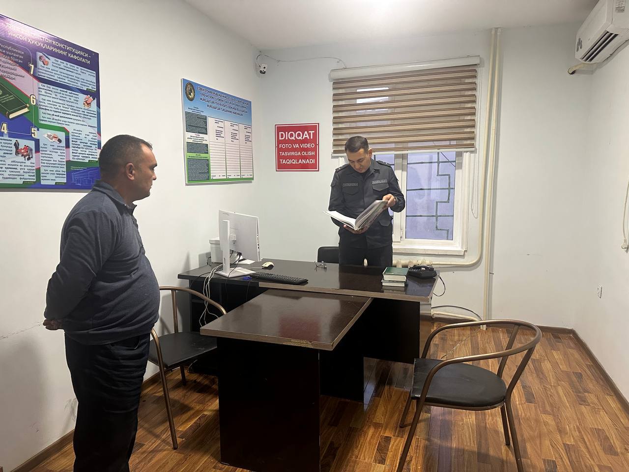 O‘rganish davomida, O‘zbekiston Respublikasi Prezidentining sohaga oid Farmon va Qarorlarining ijrosi hamda O‘zbekiston Respublikasi Bosh prokuraturasi va Ichki ishlar vazirligining 11.03.2025 yildagi Qo‘shma ko‘rsatmasi ijrosini to‘laqonli taʼminlash yuzasidan amalga oshirilayotgan ishlar tekshirildi. Shuningdek, O‘zbekiston Respublikasi Ichki ishlar vazirining 24.04.2024 yildagi «Ichki ishlar organlarida jismoniy va yuridik shaxslarning murojaatlari bilan ilash tizimini takomillashtirish to‘g‘risida»gi 200-sonli buyrug‘iga asosan fuqarolar murojaatlari bilan ishlash ahvoli o‘rganilib, tegishli ko‘rsatmalar berildi. Bundan tashqari, ichki ishlar bo‘limi xodimlarining yashash sharoitlari va oilaviy ahvoli o‘rganilib, yaqin qarindoshlari bilan suhbatlar o‘tkazildi.