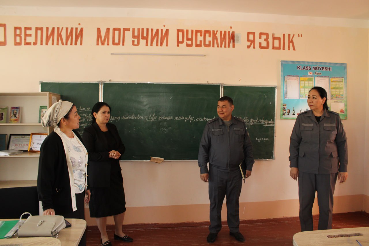 Qoraqalpog‘iston Respublikasi Ichki ishlar vazirligi Huquqbuzarliklar profilaktikasi boshqarmasi boshlig‘i Bo‘zatov tumanida "Oila-maktab-mahalla" tamoyili asosida amalga oshirilayotgan ishlarning borishini o‘rgandi.