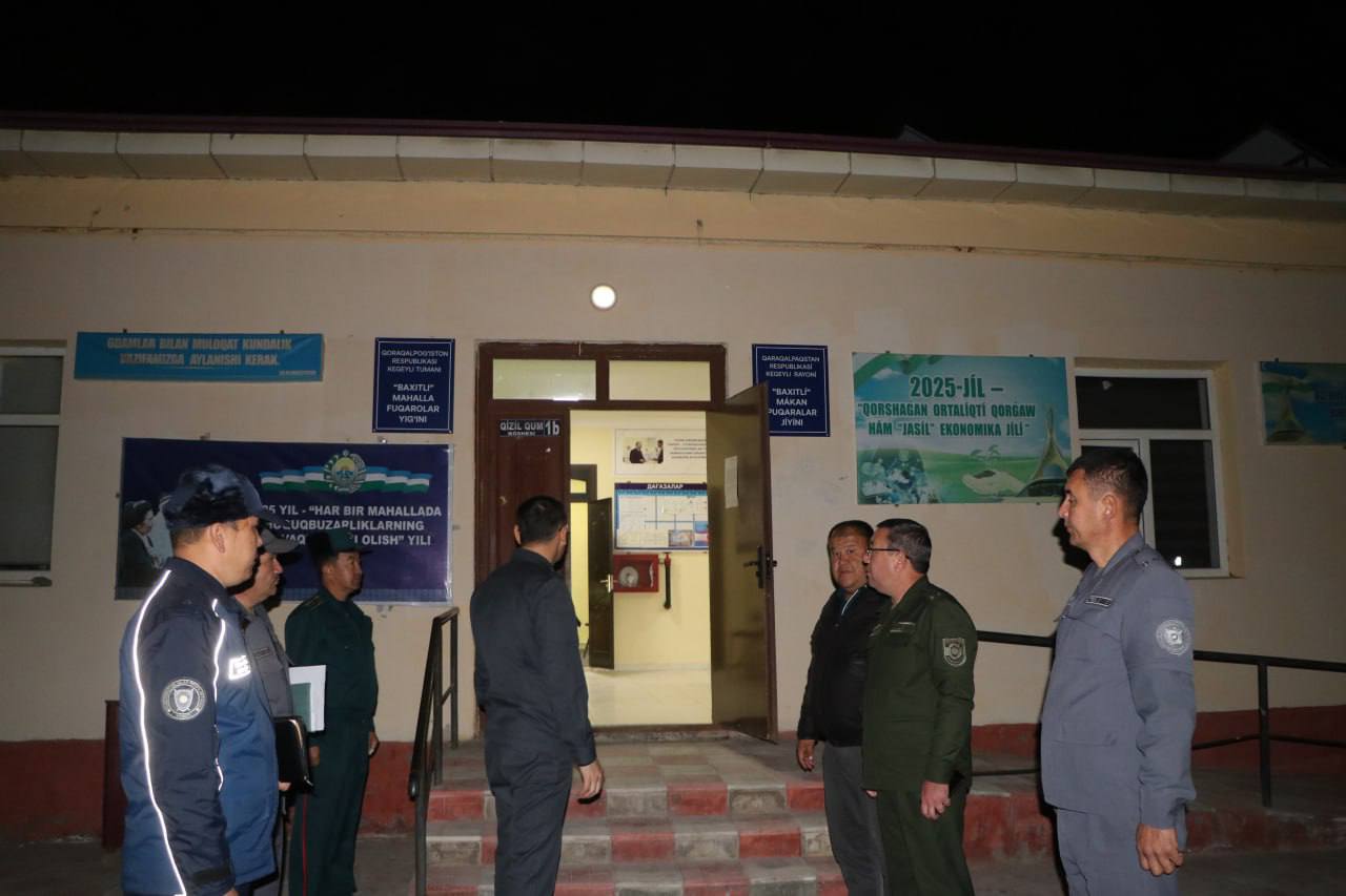 Davlatimiz rahbarining hududlarda jinoyatchilikni bartaraf etish va huquqbuzarliklarning barvaqt oldini olishga qaratilgan topshiriqlari ijrosi yuzasidan Qoraqalpog‘iston Respublikasi Ichki ishlar vazirining o‘rinbosari M.T.Raxmatullayev tomonidan Kegeyli tumanida tungi o‘rganish ishlari olib borildi.