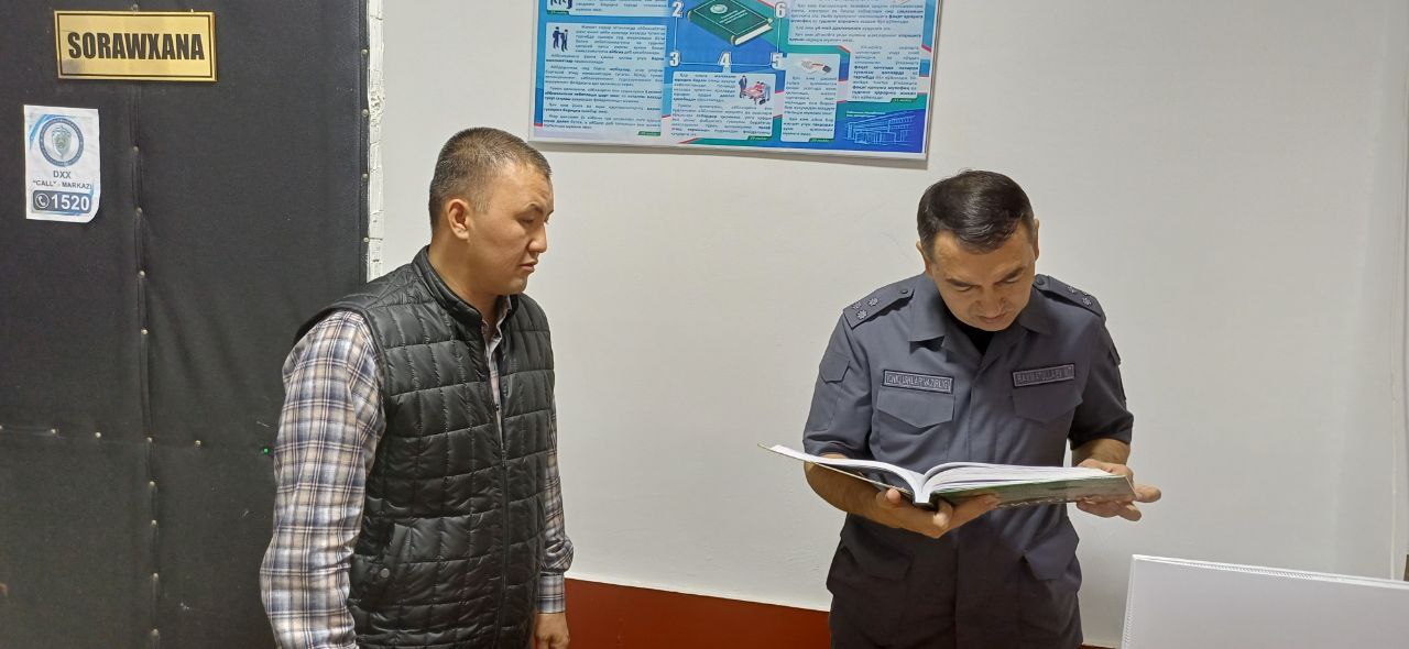 Úyreniw dawamında, Ózbekstan Respublikası Prezidentiniń tarawǵa baylanıslı Párman hám Qararlarınıń orınlanıwı hám Ózbekstan Respublikası Bas prokuraturası hám Ishki isler ministrliginiń 11.03.2025-jıldaǵı Birgeliktegi kórsetpesiniń orınlanıwın tolıq támiyinlew boyınsha ámelge asırılıp atırǵan jumıslar tekserilip shıǵıldı. Sonday-aq, Ózbekstan Respublikası Ishki isler ministriniń 24.04.2024-jıldaǵı "Ishki isler uyımlarında fizikalıq hám yuridikalıq táreplerdiń múrájatları menen islesiw sistemasın jetilistiriw haqqında"ǵı 200-sanlı buyrıǵına tiykarlanıp puqaralardıń múrájatları menen islesiw jaǵdayı úyrenilip, tiyisli kórsetpeler berildi. Bunnan tısqarı, ishki isler bólimi xızmetkerleriniń jasaw sharayatları hám shańaraqlıq jaǵdayı úyrenilip, jaqın tuwısqanları menen sáwbetlesiwler ótkerildi.