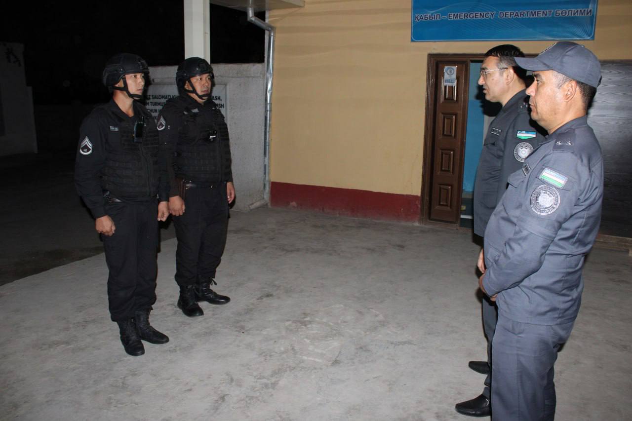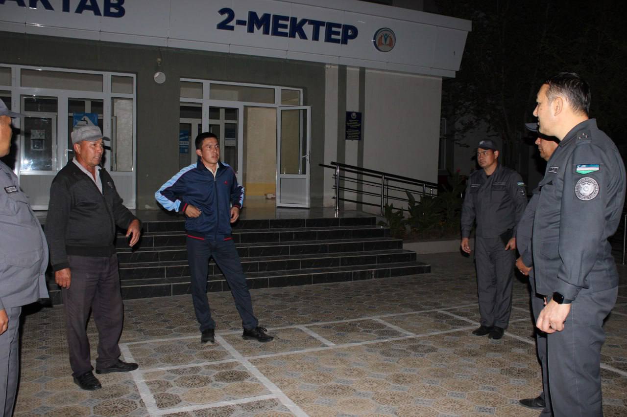 Ministr orınbasarı M.T.Raxmatullaev dáslep túngi xızmetke biriktirilgen xızmetkerlerdiń jumısı menen tanısıp, jámietlik tártipti saqlaw, jınayachılıq hám huqıqbuzarlıqlardıń aldın alıw, kriminogen jaǵdayı awır bolǵan aymaqlardıń turaqlılıǵın támiyinlew, túngi waqıtta jol transport hádiyseleriniń aldın alıw, háreket qáwipsizligin támiyinlew boyınsha tapsırmalar berdi. Sonday-aq, Taqıyatas rayonı medicina birlespesi hám Taqıyatas rayonı 2-sanlı mektep imaratlarınıń qorǵalıwı hám gúzgi-qısqı máwsimge tayarlıq jaǵdayı úyrenilip, qáwipsizlikti támiyinlew boyınsha tiyisli kórsetpeler berdi.