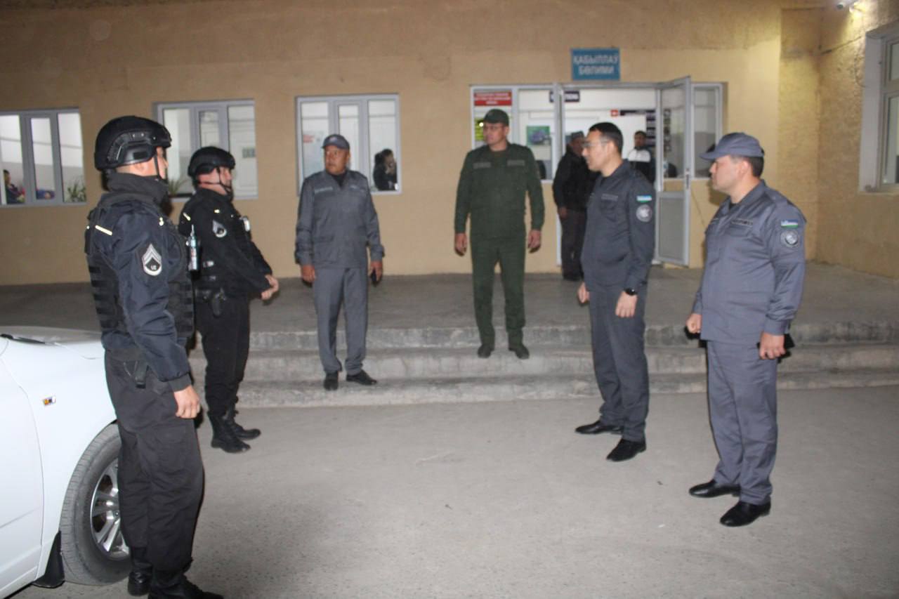 Ministr orınbasarı M.T.Raxmatullaev dáslep túngi xızmetke biriktirilgen xızmetkerlerdiń jumısı menen tanısıp, jámietlik tártipti saqlaw, jınayachılıq hám huqıqbuzarlıqlardıń aldın alıw, kriminogen jaǵdayı awır bolǵan aymaqlardıń turaqlılıǵın támiyinlew, túngi waqıtta jol transport hádiyseleriniń aldın alıw, háreket qáwipsizligin támiyinlew boyınsha tapsırmalar berdi. Sonday-aq, Taqıyatas rayonı medicina birlespesi, Taqıyatas rayonı 3-sanlı mektebi hám 14-sanlı mektepke shekemgi bilimlendiriw mákemesi imaratlarınıń qorǵalıwı hám gúzgi-qısqı máwsimge tayarlıq jaǵdayı úyrenilip, qáwipsizlikti támiyinlew boyınsha tiyisli kórsetpeler berdi. Bunnan tısqarı, Taqıyatas rayonı "Xalıqlar doslıǵı" MPJ aymaǵında jaylasqan "8A" hám "9A" kóp qabatlı turaq jaylardıń qáwipsizligin támiyinlew jumıslarınıń jaǵdayı úyrenildi. Davlatimiz rahbarining hududlarda jinoyatchilikni jilovlash hamda huquqbuzarliklarning barvaqt profilaktikasiga qaratilgan topshiriqlarining ijrosi bo‘yicha Qoraqalpog‘iston Respublikasi Ichki ishlar vaziri o‘rinbosari tomonidan tungi vaqtda Taxiatosh tumanida o‘rganish ishlari olib borildi
