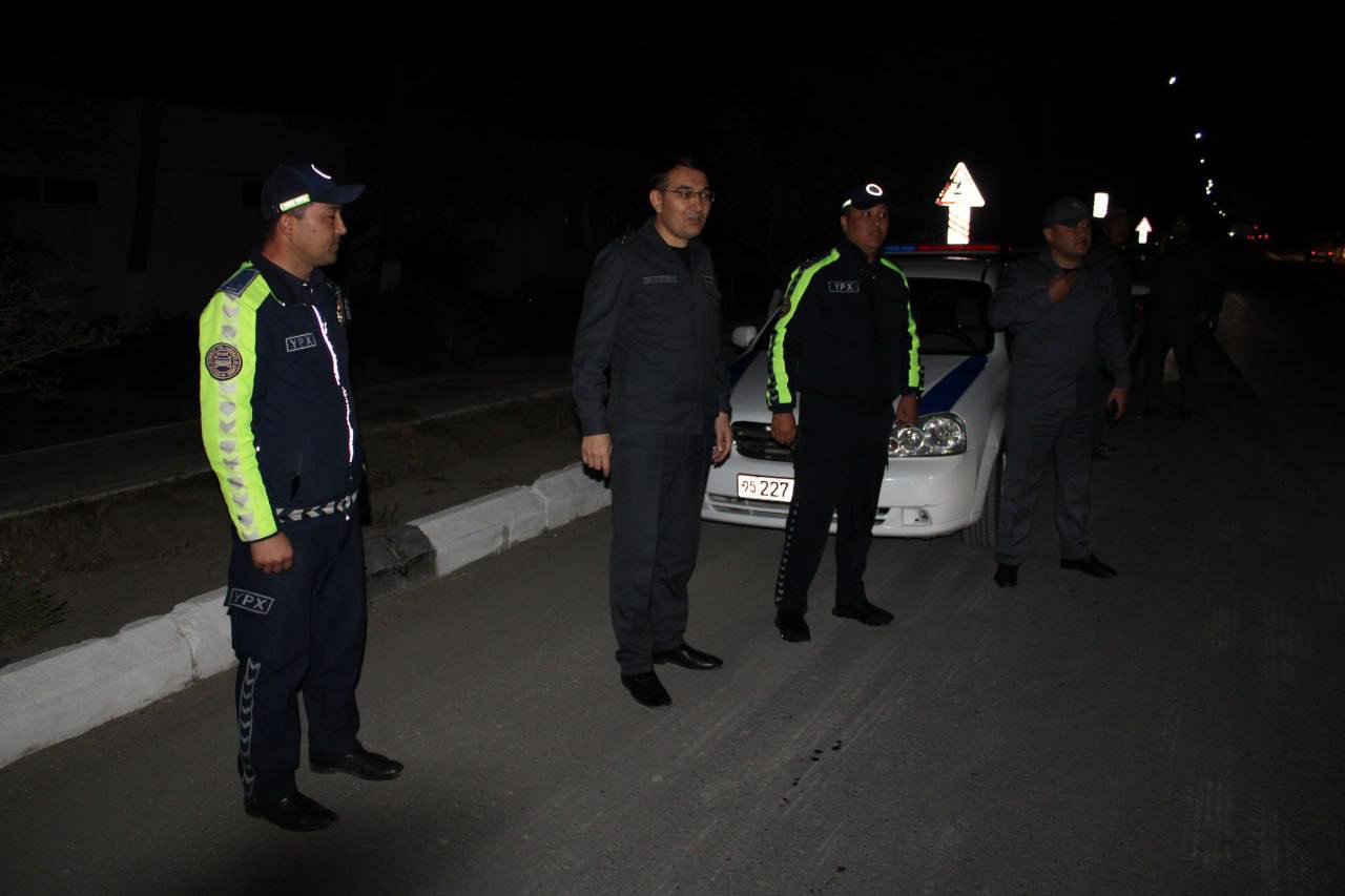 Mámleketimiz basshısınıń aymaqlarda jınayachılıqtı saplastırıw hám huqıqbuzarlıqlardıń erte aldın alıwǵa qaratılǵan tapsırmaları orınlanıwı boyınsha Qaraqalpaqstan Respublikası Ishki isler ministriniń orınbasarı tárepinen túngi waqıtta Taqıyatas rayonında úyreniw jumısları alıp barıldı.